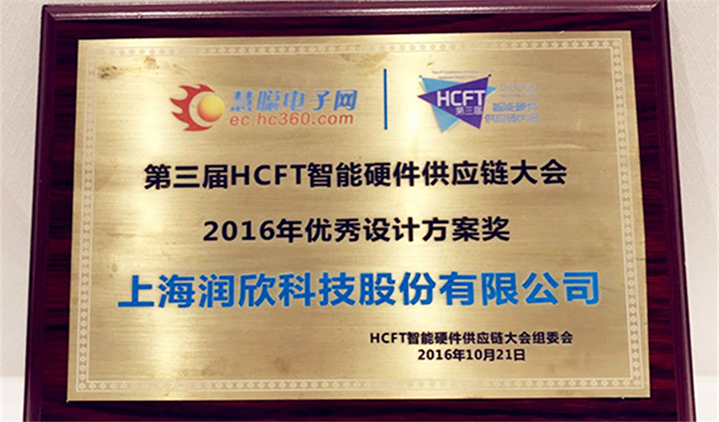 第三屆HCFT智能硬件供應(yīng)鏈大會(huì),潤(rùn)欣科技榮獲“ 優(yōu)秀設(shè)計(jì)方案 ”獎(jiǎng)。